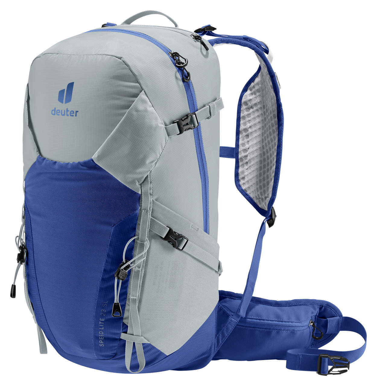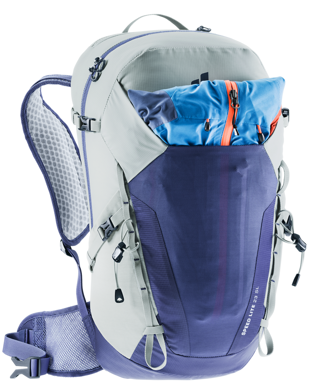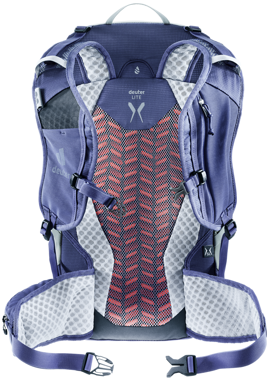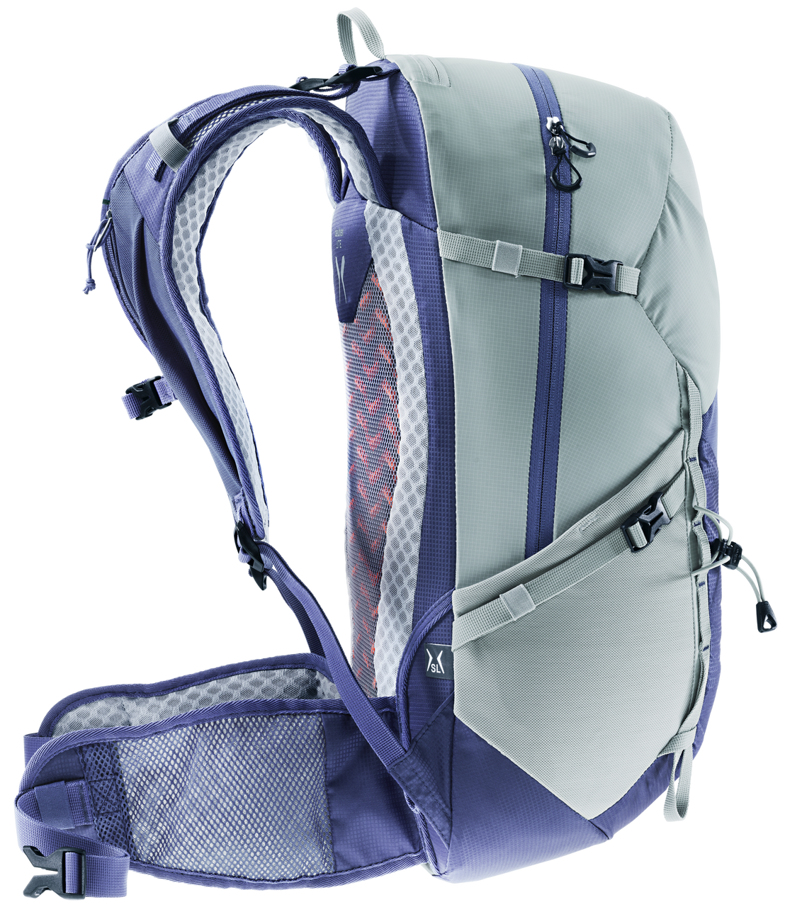 Speedy, light and sustainable thanks to deuter’s Lite back system, vest-style, perforated shoulder straps, supple hip fins, precision-adjustable sternum strap and 100% recycled, bluesign® certified body fabric. Designed for fast-paced hiking and trail running, side compression straps effectively reduce load wobble and enable full range of movement. While a pocket on the shoulder straps keeps everything that you need on the trail handy.