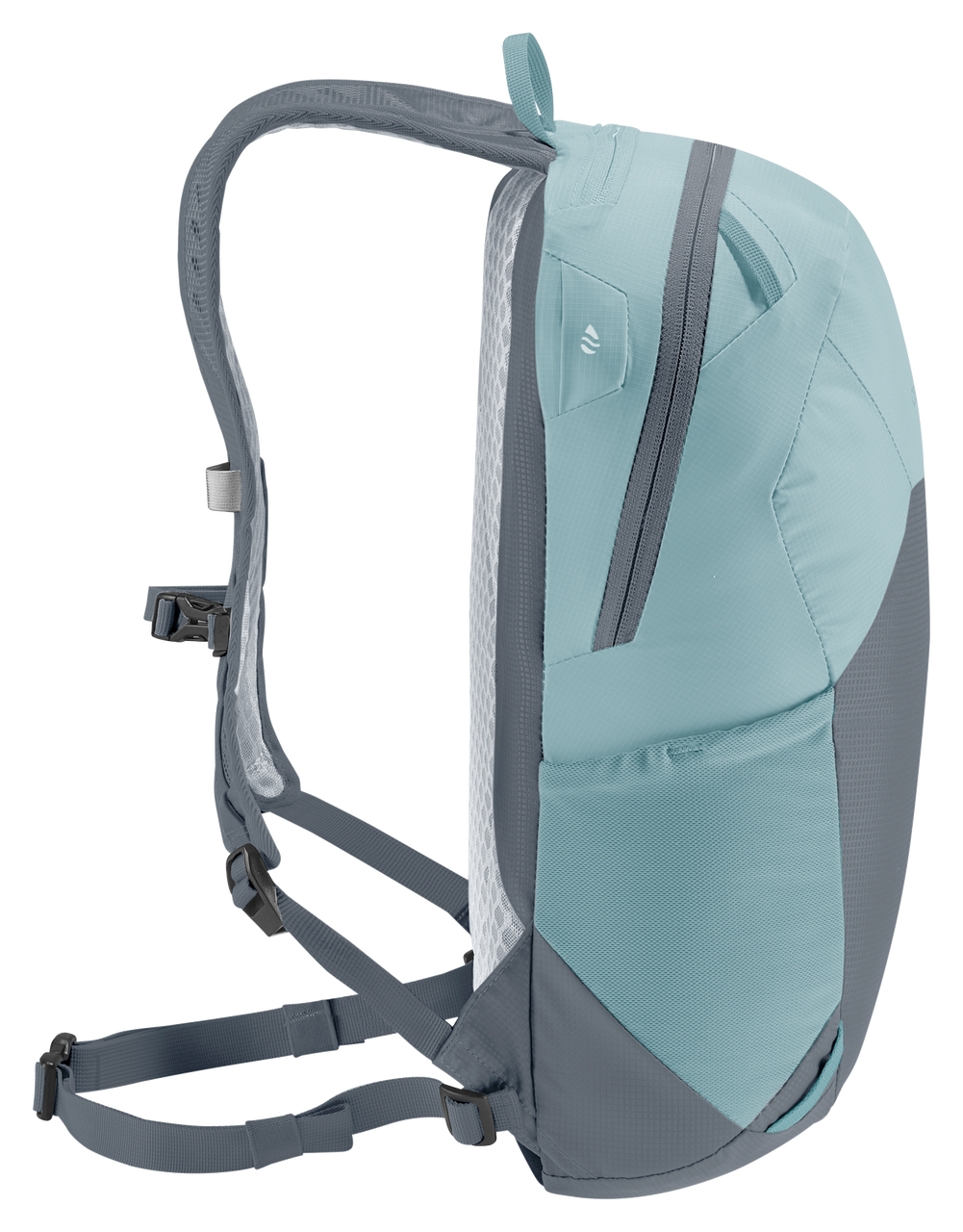This pack is speedy, light and sustainable thanks to deuter’s Lite back system, ergonomic, perforated shoulder straps, a detachable waist belt, precision-adjustable sternum strap and 100% recycled, bluesign® certified body fabric. Designed for fast-paced hiking, side compression straps effectively reduce load wobble and enable full range of movement. This helps save energy over longer distances too.