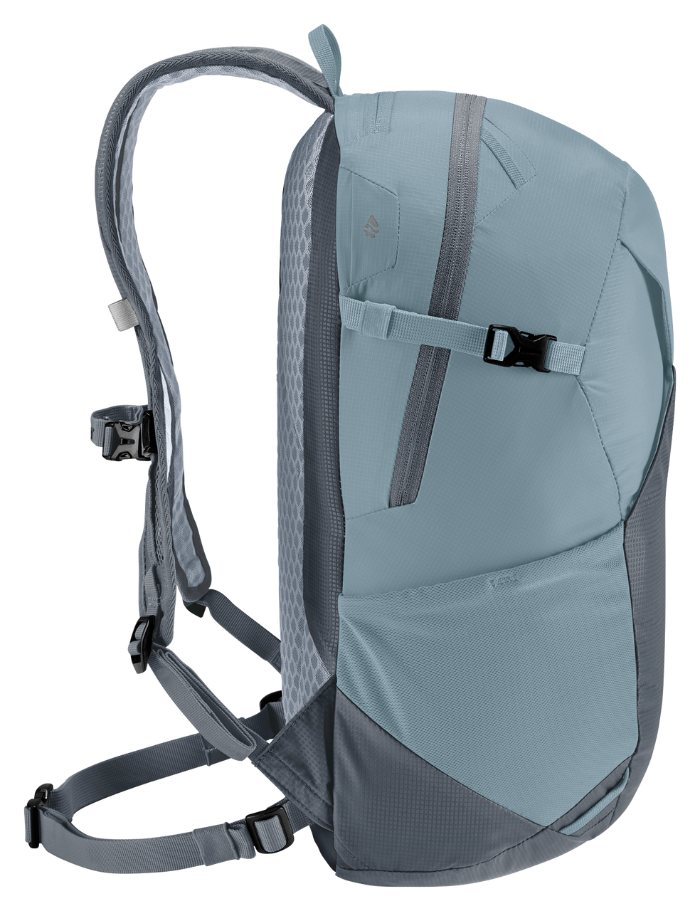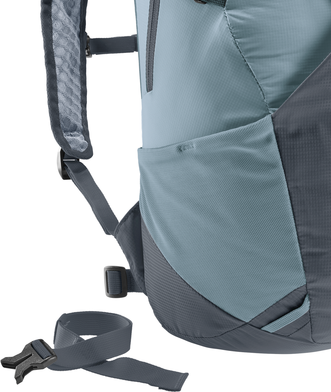 This pack is speedy, light and sustainable thanks to deuter’s Lite back system, ergonomic, perforated shoulder straps, a detachable waist belt, precision-adjustable sternum strap and 100% recycled, bluesign® certified body fabric. Designed for fast-paced hiking, side compression straps effectively reduce load wobble and enable full range of movement. This helps save energy over longer distances too.