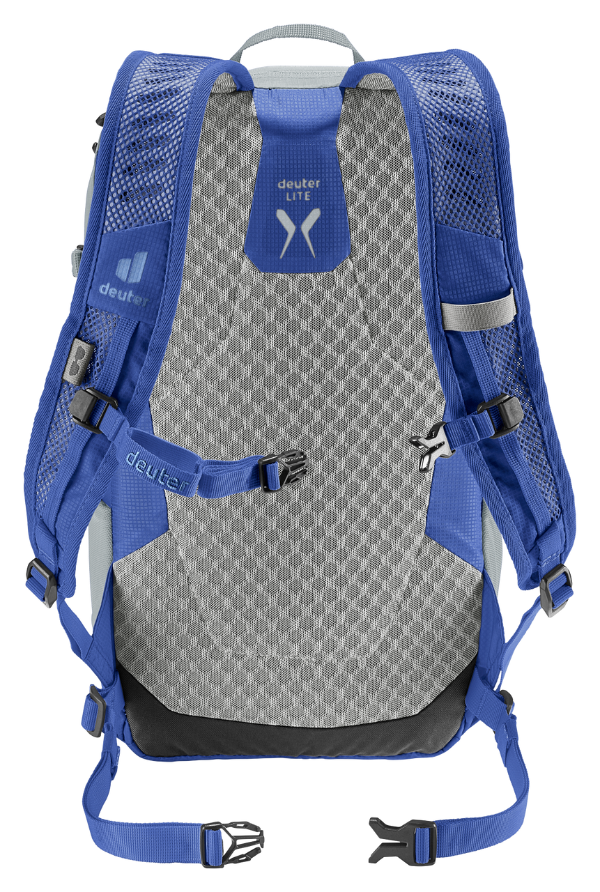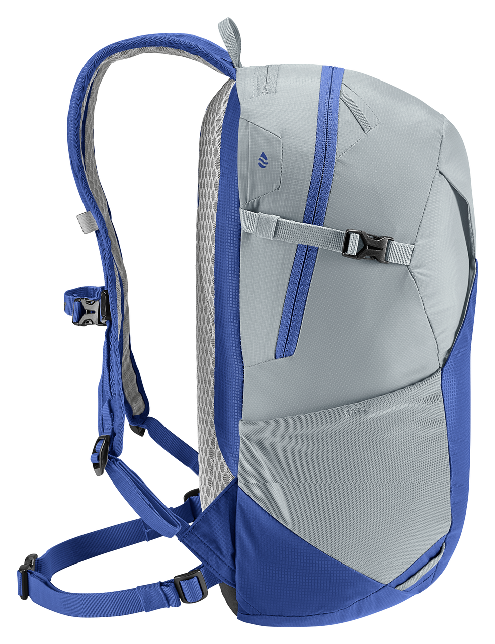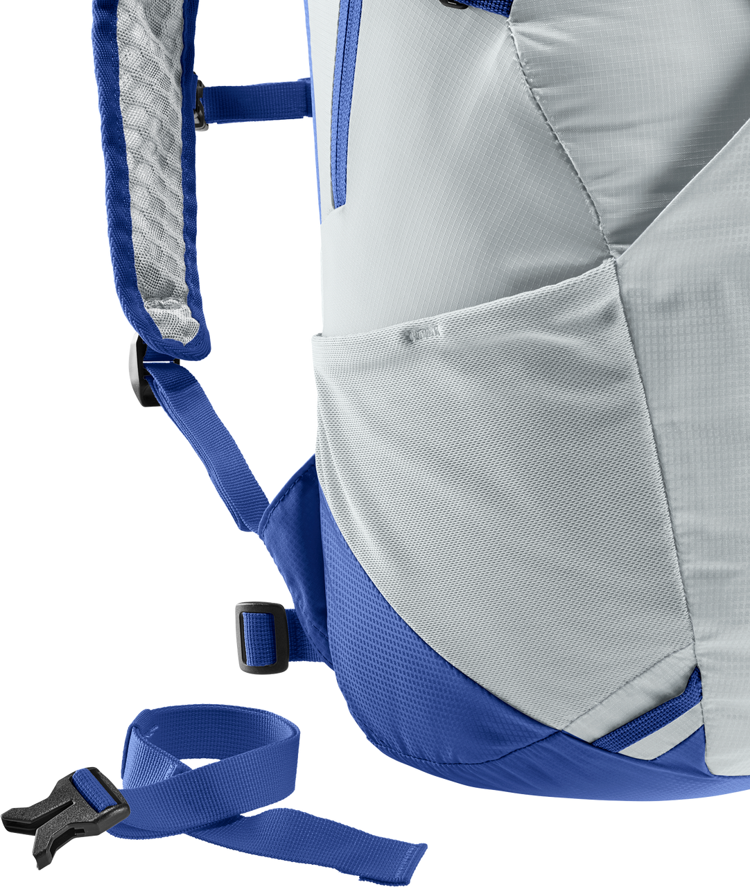 This pack is speedy, light and sustainable thanks to deuter’s Lite back system, ergonomic, perforated shoulder straps, a detachable waist belt, precision-adjustable sternum strap and 100% recycled, bluesign® certified body fabric. Designed for fast-paced hiking, side compression straps effectively reduce load wobble and enable full range of movement. This helps save energy over longer distances too.