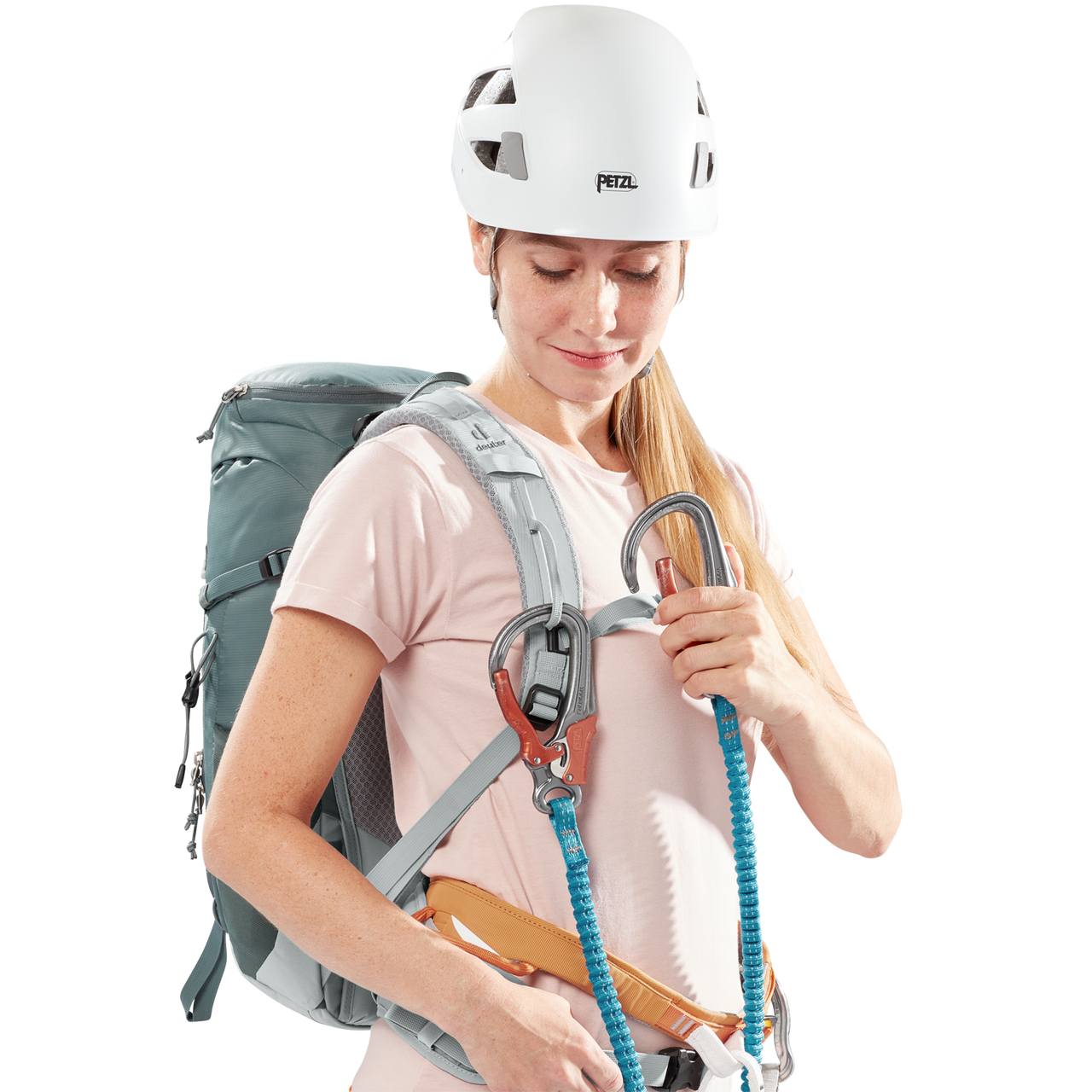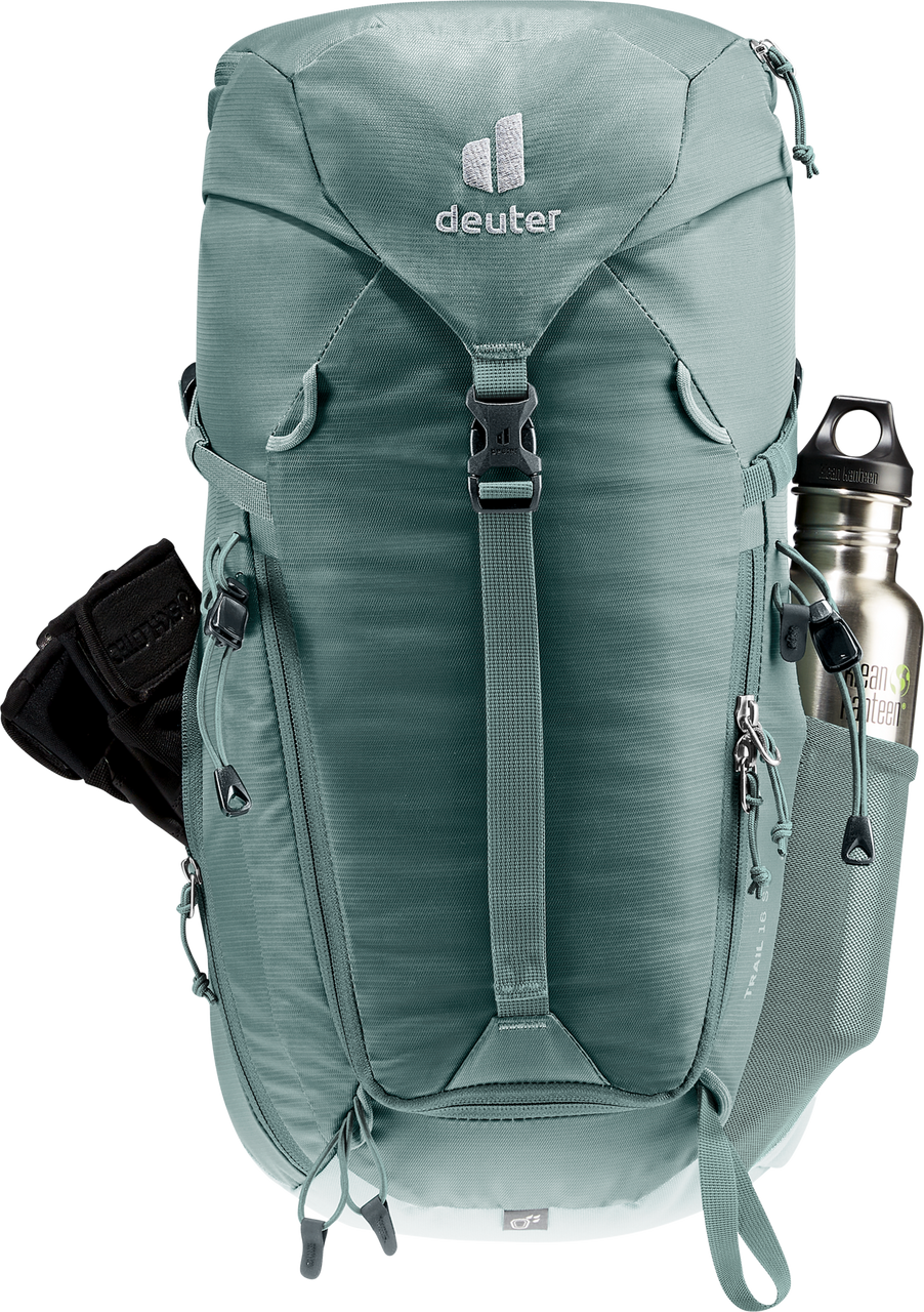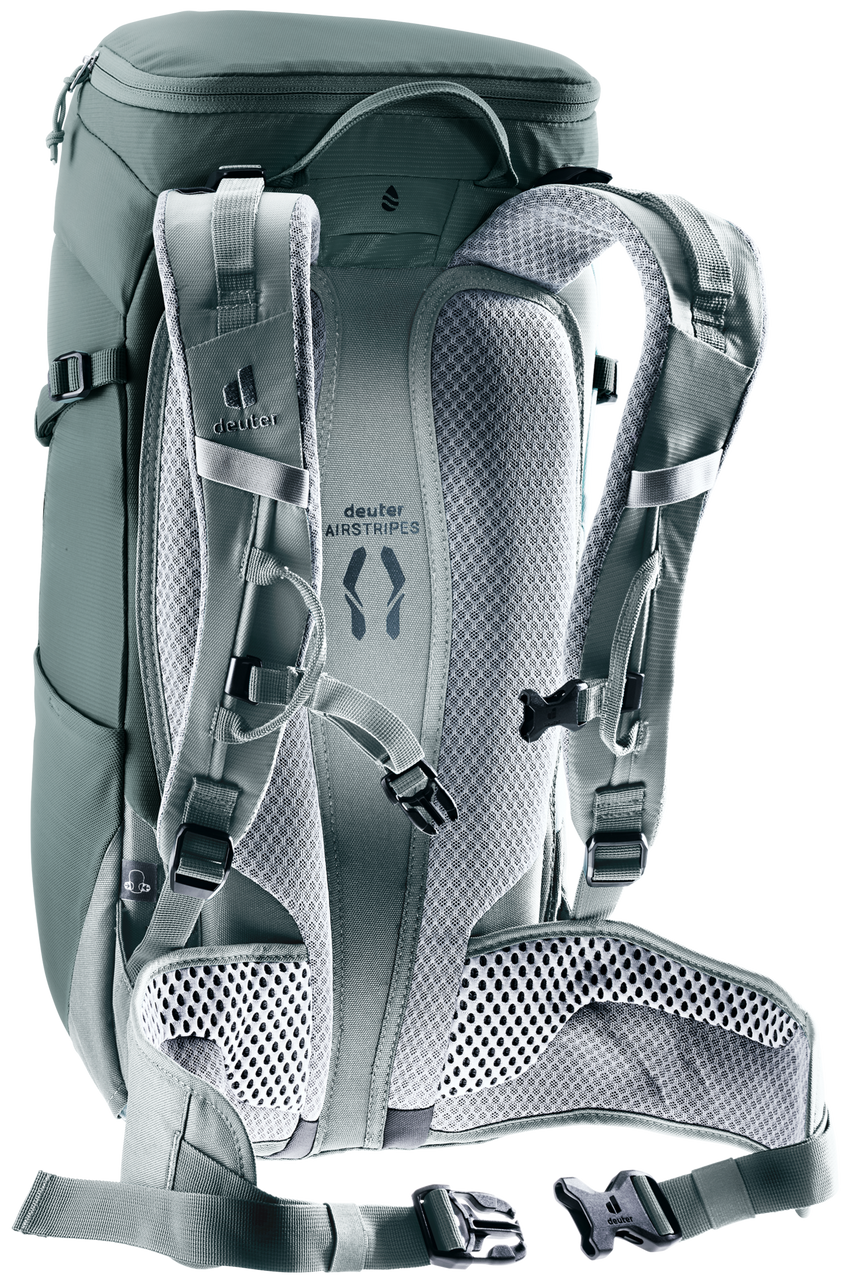 The reduced contact surface and large ventilation channels of the deuter Airstripes back system combined with perforated shoulder straps and hip fins ensure maximum airflow and even weight distribution – for a snug, secure fit over any terrain. The flat-format lid allows space for the head to move, even with a helmet on. Loops on the shoulder straps keep via ferrata set carabiners close at hand. And thanks to a large front zipper opening and side pockets, equipment and gear are always easy to access.