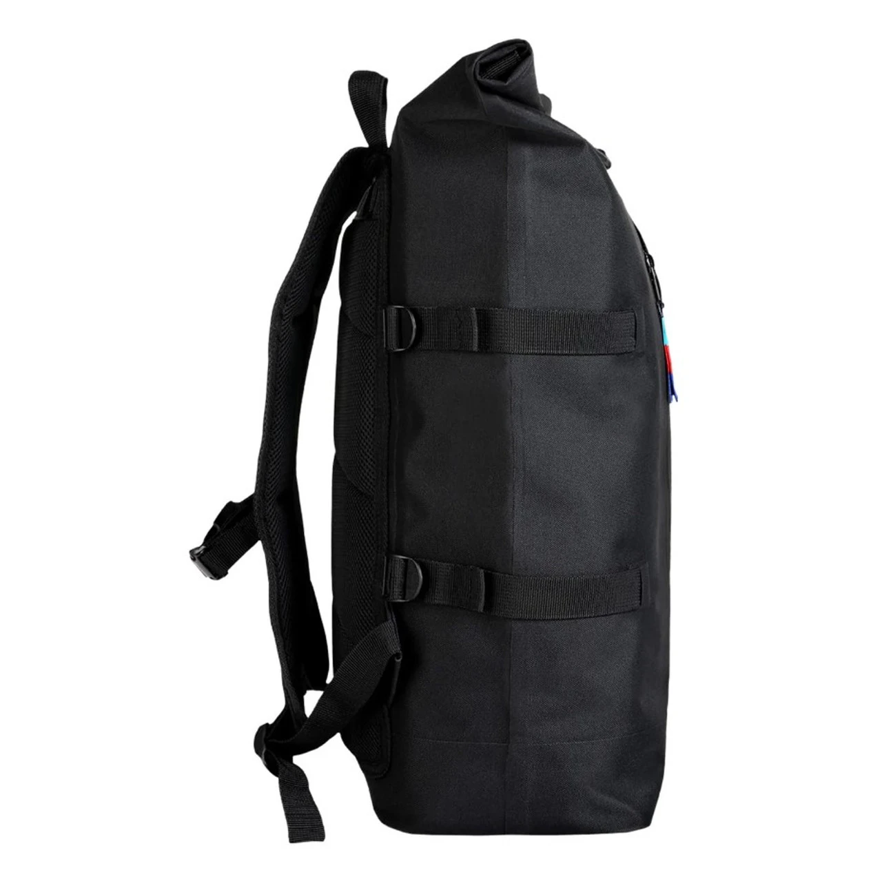 An allrounder backpack made of ocean impact plastic. Protects your essentials from wind and weather and expands easily thanks to the flexible rolltop and adjustable side straps. It protects your laptop from scratches with a separate, removable 15-inch case. Your ideal allrounder backpack for everyday life and travel.