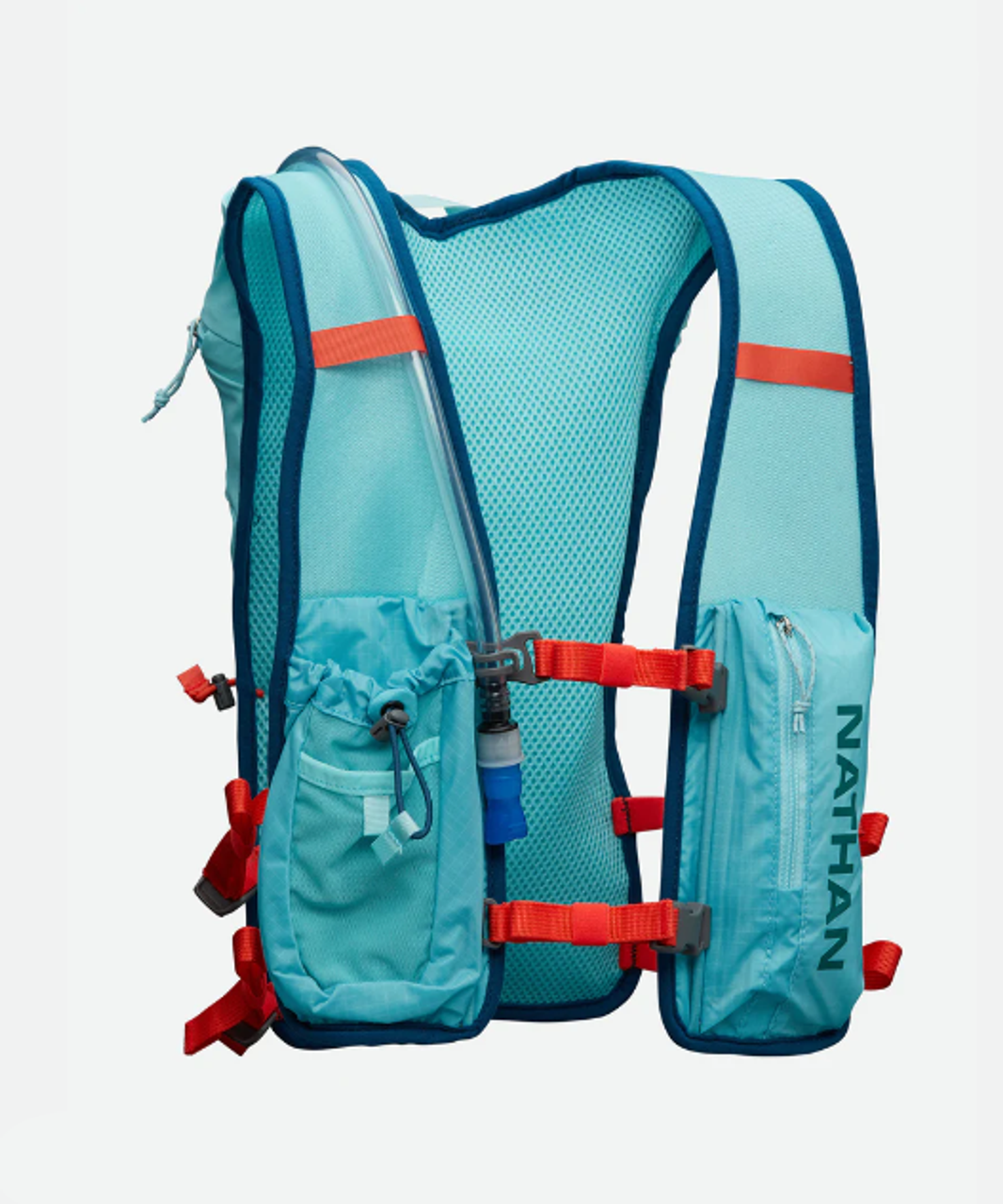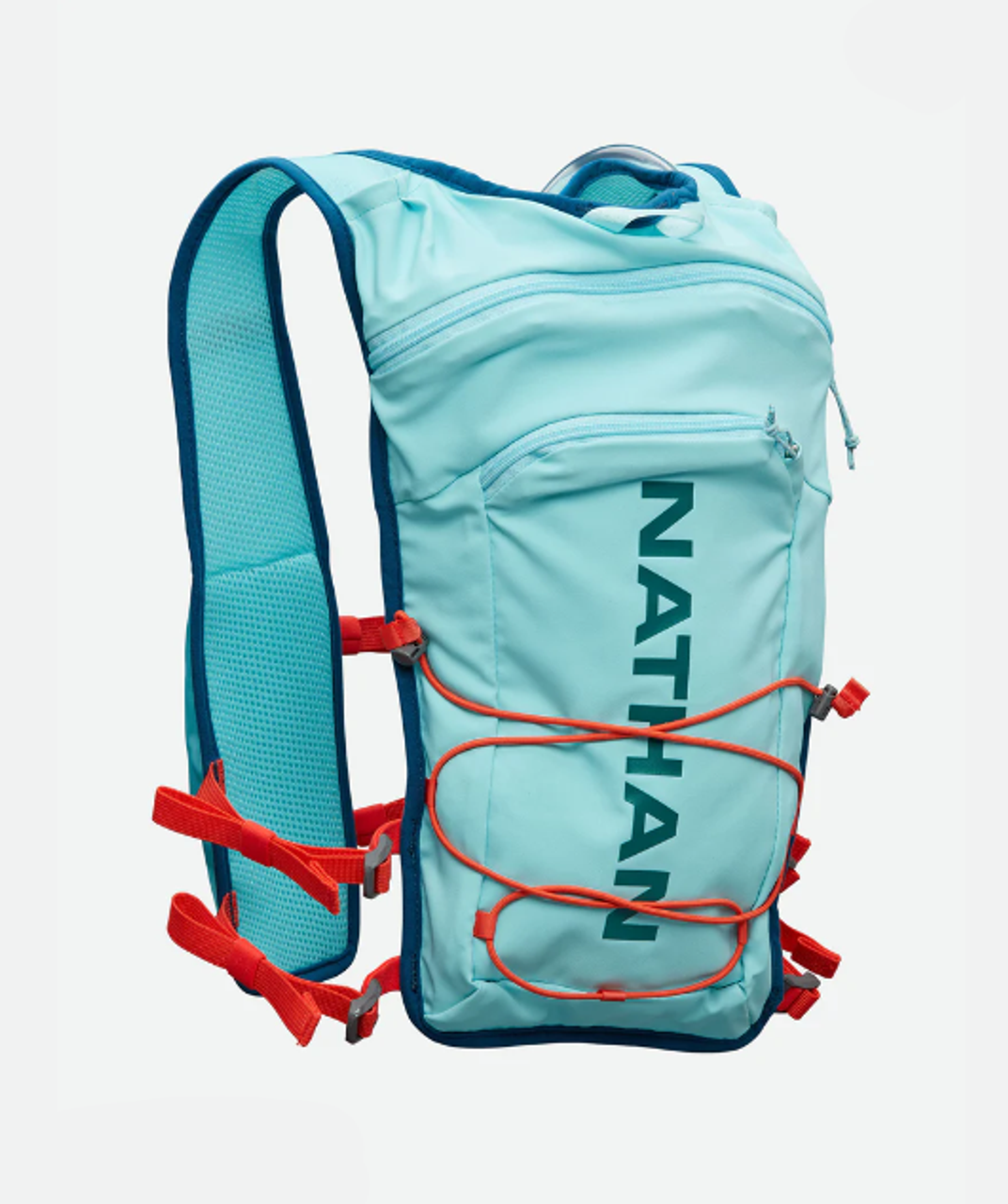 The essential Quickstart 2.0 6 Liter Hydration pack with two back storage pockets designed for the short to moderate road and trail running, and other sports.