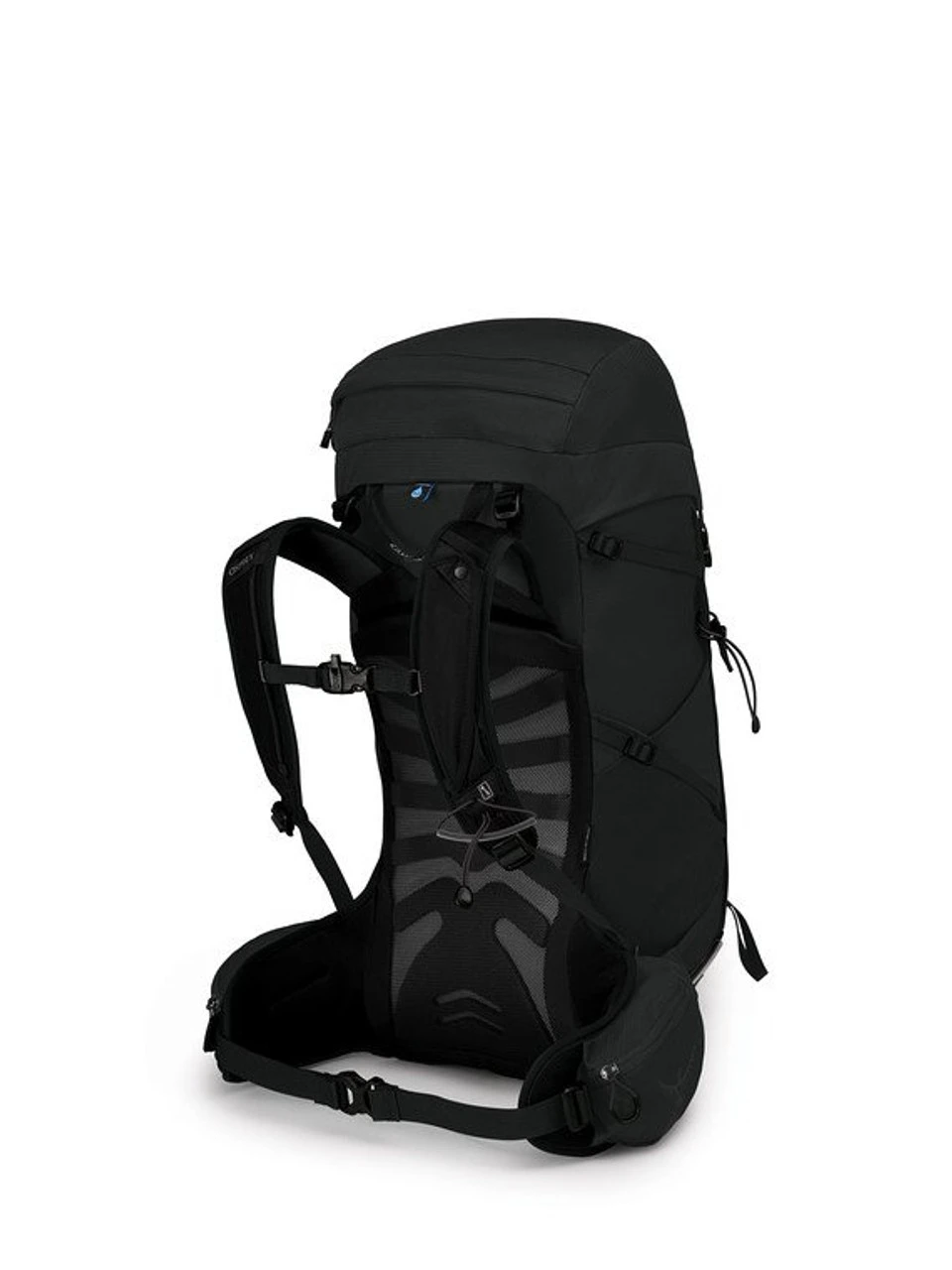 Spacermesh over die-cut foam provides breathable, comfortable contact surface Crossbody ErgoPull hipbelt system to pull lumbar into body